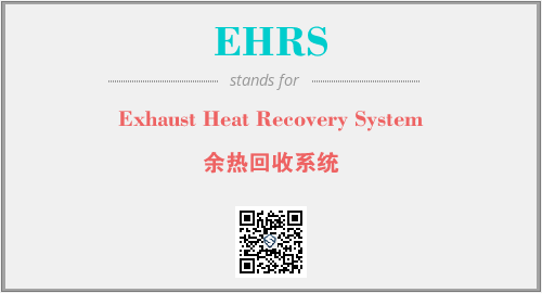 英文缩略词“EHRS”经常作为“Exhaust Heat Recovery System”的英文缩写来使用,中文表示:“余热回收系统”。本文将详细介绍英文缩写词EHRS所代表英文单词,其对应的中文拼音、详细解释以及在英语中的流行度。此外,还有关于缩略词EHRS的分类、应用领域及相关应用示例等。