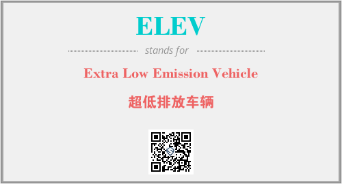 上述内容是“Extra Low Emission Vehicle”作为“ELEV”的缩写,解释为“超低排放车辆”时的信息,以及英文缩略词ELEV所代表的英文单词,其对应的中文拼音、详细解释以及在英文中的流行度和相关分类、应用领域及应用示例等。