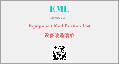 英文缩略词“EML”经常作为“Equipment Modification List”的英文缩写来使用,中文表示:“设备改造清单”。本文将详细介绍英文缩写词EML所代表英文单词,其对应的中文拼音、详细解释以及在英语中的流行度。此外,还有关于缩略词EML的分类、应用领域及相关应用示例等。