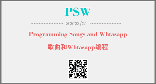 以上为Programming Songs and Whtasapp英文缩略词PSW的中文解释,以及该英文缩写在英语的流行度、分类和应用领域方面的信息。