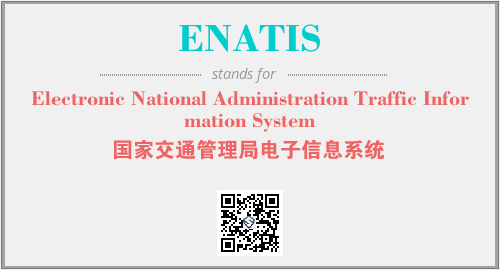 上述内容是“Electronic National Administration Traffic Information System”作为“ENATIS”的缩写,解释为“国家交通管理局电子信息系统”时的信息,以及英文缩略词ENATIS所代表的英文单词,其对应的中文拼音、详细解释以及在英文中的流行度和相关分类、应用领域及应用示例等。