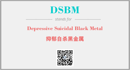 英文缩略词“DSBM”经常作为“Depressive Suicidal Black Metal”的英文缩写来使用,中文表示:“抑郁自杀黑金属”。本文将详细介绍英文缩写词DSBM所代表英文单词,其对应的中文拼音、详细解释以及在英语中的流行度。此外,还有关于缩略词DSBM的分类、应用领域及相关应用示例等。