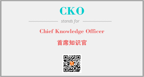 英文缩略词“CKO”经常作为“Chief Knowledge Officer”的英文缩写来使用,中文表示:“首席知识官”。本文将详细介绍英文缩写词CKO所代表英文单词,其对应的中文拼音、详细解释以及在英语中的流行度。此外,还有关于缩略词CKO的分类、应用领域及相关应用示例等。