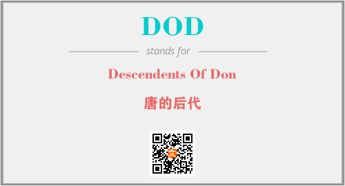 上述内容是“Descendents Of Don”作为“DOD”的缩写,解释为“唐的后代”时的信息,以及英文缩略词DOD所代表的英文单词,其对应的中文拼音、详细解释以及在英文中的流行度和相关分类、应用领域及应用示例等。