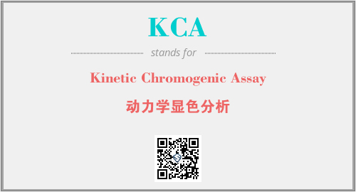 上述内容是“Kinetic Chromogenic Assay”作为“KCA”的缩写,解释为“动力学显色分析”时的信息,以及英文缩略词KCA所代表的英文单词,其对应的中文拼音、详细解释以及在英文中的流行度和相关分类、应用领域及应用示例等。