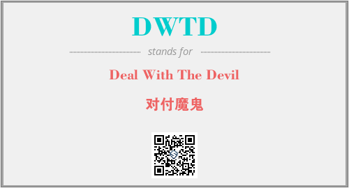 上述内容是“Deal With The Devil”作为“DWTD”的缩写,解释为“对付魔鬼”时的信息,以及英文缩略词DWTD所代表的英文单词,其对应的中文拼音、详细解释以及在英文中的流行度和相关分类、应用领域及应用示例等。