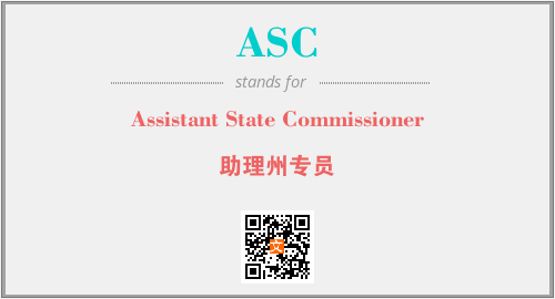 英文缩略词“ASC”经常作为“Assistant State Commissioner”的英文缩写来使用,中文表示:“助理州专员”。本文将详细介绍英文缩写词ASC所代表英文单词,其对应的中文拼音、详细解释以及在英语中的流行度。此外,还有关于缩略词ASC的分类、应用领域及相关应用示例等。