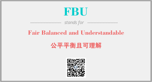 上述内容是“Fair Balanced and Understandable”作为“FBU”的缩写,解释为“公平平衡且可理解”时的信息,以及英文缩略词FBU所代表的英文单词,其对应的中文拼音、详细解释以及在英文中的流行度和相关分类、应用领域及应用示例等。