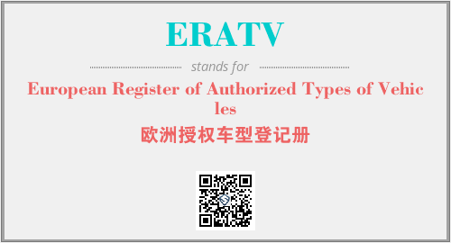 英文缩略词“ERATV”经常作为“European Register of Authorized Types of Vehicles”的英文缩写来使用,中文表示:“欧洲授权车型登记册”。本文将详细介绍英文缩写词ERATV所代表英文单词,其对应的中文拼音、详细解释以及在英语中的流行度。此外,还有关于缩略词ERATV的分类、应用领域及相关应用示例等。