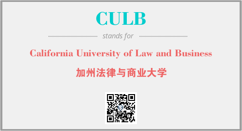 上述内容是“California University of Law and Business”作为“CULB”的缩写,解释为“加州法律与商业大学”时的信息,以及英文缩略词CULB所代表的英文单词,其对应的中文拼音、详细解释以及在英文中的流行度和相关分类、应用领域及应用示例等。