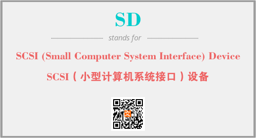 上述内容是“SCSI (Small Computer System Interface) Device”作为“SD”的缩写,解释为“SCSI(小型计算机系统接口)设备”时的信息,以及英文缩略词SD所代表的英文单词,其对应的中文拼音、详细解释以及在英文中的流行度和相关分类、应用领域及应用示例等。
