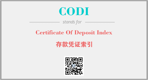 上述内容是“Certificate Of Deposit Index”作为“CODI”的缩写,解释为“存款凭证索引”时的信息,以及英文缩略词CODI所代表的英文单词,其对应的中文拼音、详细解释以及在英文中的流行度和相关分类、应用领域及应用示例等。