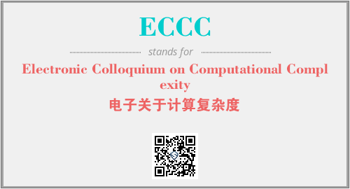 英文缩略词“ECCC”经常作为“Electronic Colloquium on Computational Complexity”的英文缩写来使用,中文表示:“电子关于计算复杂度”。本文将详细介绍英文缩写词ECCC所代表英文单词,其对应的中文拼音、详细解释以及在英语中的流行度。此外,还有关于缩略词ECCC的分类、应用领域及相关应用示例等。