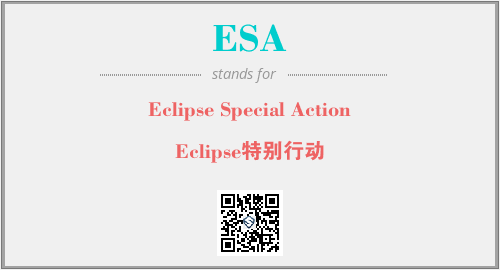 英文缩略词“ESA”经常作为“Eclipse Special Action”的英文缩写来使用,中文表示:“Eclipse特别行动”。本文将详细介绍英文缩写词ESA所代表英文单词,其对应的中文拼音、详细解释以及在英语中的流行度。此外,还有关于缩略词ESA的分类、应用领域及相关应用示例等。