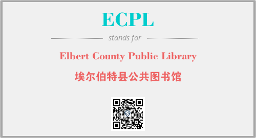 上述内容是“Elbert County Public Library”作为“ECPL”的缩写,解释为“埃尔伯特县公共图书馆”时的信息,以及英文缩略词ECPL所代表的英文单词,其对应的中文拼音、详细解释以及在英文中的流行度和相关分类、应用领域及应用示例等。