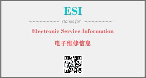 英文缩略词“ESI”经常作为“Electronic Service Information”的英文缩写来使用,中文表示:“电子维修信息”。本文将详细介绍英文缩写词ESI所代表英文单词,其对应的中文拼音、详细解释以及在英语中的流行度。此外,还有关于缩略词ESI的分类、应用领域及相关应用示例等。