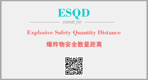 英文缩略词“ESQD”经常作为“Explosive Safety Quantity Distance”的英文缩写来使用,中文表示:“爆炸物安全数量距离”。本文将详细介绍英文缩写词ESQD所代表英文单词,其对应的中文拼音、详细解释以及在英语中的流行度。此外,还有关于缩略词ESQD的分类、应用领域及相关应用示例等。