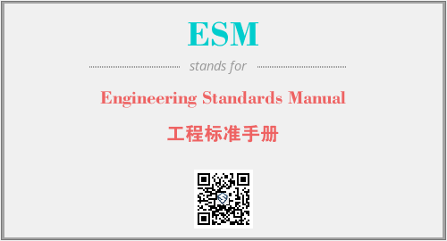 英文缩略词“ESM”经常作为“Engineering Standards Manual”的英文缩写来使用,中文表示:“工程标准手册”。本文将详细介绍英文缩写词ESM所代表英文单词,其对应的中文拼音、详细解释以及在英语中的流行度。此外,还有关于缩略词ESM的分类、应用领域及相关应用示例等。