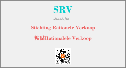 上述内容是“Stichting Rationele Verkoop”作为“SRV”的缩写,解释为“粘贴Rationalele Verkoop”时的信息,以及英文缩略词SRV所代表的英文单词,其对应的中文拼音、详细解释以及在英文中的流行度和相关分类、应用领域及应用示例等。
