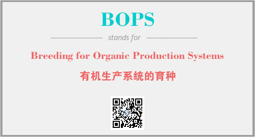 英文缩略词“BOPS”经常作为“Breeding for Organic Production Systems”的英文缩写来使用,中文表示:“有机生产系统的育种”。本文将详细介绍英文缩写词BOPS所代表英文单词,其对应的中文拼音、详细解释以及在英语中的流行度。此外,还有关于缩略词BOPS的分类、应用领域及相关应用示例等。