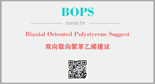 上述内容是“Biaxial Oriented Polystyrene Suggest”作为“BOPS”的缩写,解释为“双向取向聚苯乙烯建议”时的信息,以及英文缩略词BOPS所代表的英文单词,其对应的中文拼音、详细解释以及在英文中的流行度和相关分类、应用领域及应用示例等。