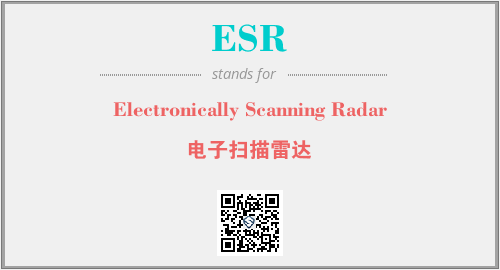 英文缩略词“ESR”经常作为“Electronically Scanning Radar”的英文缩写来使用,中文表示:“电子扫描雷达”。本文将详细介绍英文缩写词ESR所代表英文单词,其对应的中文拼音、详细解释以及在英语中的流行度。此外,还有关于缩略词ESR的分类、应用领域及相关应用示例等。