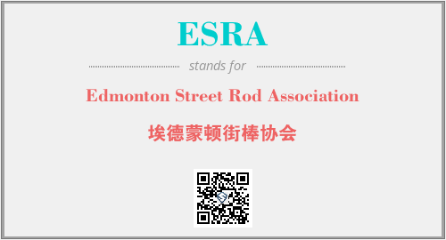 英文缩略词“ESRA”经常作为“Edmonton Street Rod Association”的英文缩写来使用,中文表示:“埃德蒙顿街棒协会”。本文将详细介绍英文缩写词ESRA所代表英文单词,其对应的中文拼音、详细解释以及在英语中的流行度。此外,还有关于缩略词ESRA的分类、应用领域及相关应用示例等。