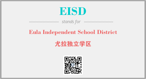 英文缩略词“EISD”经常作为“Eula Independent School District”的英文缩写来使用,中文表示:“尤拉独立学区”。本文将详细介绍英文缩写词EISD所代表英文单词,其对应的中文拼音、详细解释以及在英语中的流行度。此外,还有关于缩略词EISD的分类、应用领域及相关应用示例等。