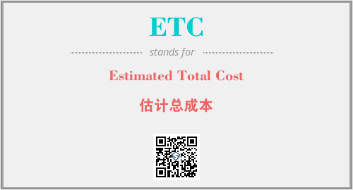 英文缩略词“ETC”经常作为“Estimated Total Cost”的英文缩写来使用,中文表示:“估计总成本”。本文将详细介绍英文缩写词ETC所代表英文单词,其对应的中文拼音、详细解释以及在英语中的流行度。此外,还有关于缩略词ETC的分类、应用领域及相关应用示例等。