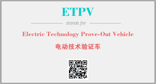 以上为Electric Technology Prove-Out Vehicle英文缩略词ETPV的中文解释,以及该英文缩写在英语的流行度、分类和应用领域方面的信息。