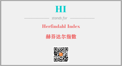 上述内容是“Herfindahl Index”作为“HI”的缩写,解释为“赫芬达尔指数”时的信息,以及英文缩略词HI所代表的英文单词,其对应的中文拼音、详细解释以及在英文中的流行度和相关分类、应用领域及应用示例等。