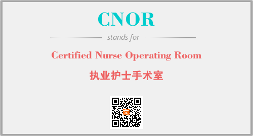 英文缩略词“CNOR”经常作为“Certified Nurse Operating Room”的英文缩写来使用,中文表示:“执业护士手术室”。本文将详细介绍英文缩写词CNOR所代表英文单词,其对应的中文拼音、详细解释以及在英语中的流行度。此外,还有关于缩略词CNOR的分类、应用领域及相关应用示例等。