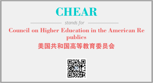 上述内容是“Council on Higher Education in the American Republics”作为“CHEAR”的缩写,解释为“美国共和国高等教育委员会”时的信息,以及英文缩略词CHEAR所代表的英文单词,其对应的中文拼音、详细解释以及在英文中的流行度和相关分类、应用领域及应用示例等。
