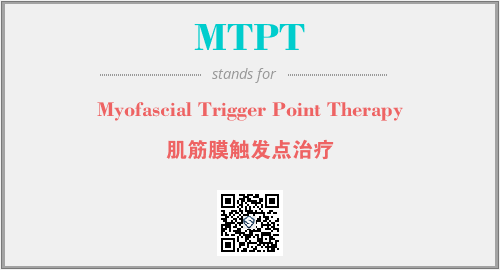 英文缩略词“MTPT”经常作为“Myofascial Trigger Point Therapy”的英文缩写来使用,中文表示:“肌筋膜触发点治疗”。本文将详细介绍英文缩写词MTPT所代表英文单词,其对应的中文拼音、详细解释以及在英语中的流行度。此外,还有关于缩略词MTPT的分类、应用领域及相关应用示例等。