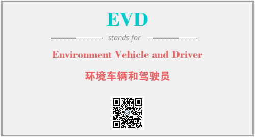 上述内容是“Environment Vehicle and Driver”作为“EVD”的缩写,解释为“环境车辆和驾驶员”时的信息,以及英文缩略词EVD所代表的英文单词,其对应的中文拼音、详细解释以及在英文中的流行度和相关分类、应用领域及应用示例等。