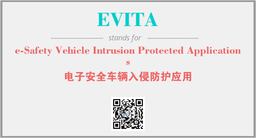 英文缩略词“EVITA”经常作为“e-Safety Vehicle Intrusion Protected Applications”的英文缩写来使用,中文表示:“电子安全车辆入侵防护应用”。本文将详细介绍英文缩写词EVITA所代表英文单词,其对应的中文拼音、详细解释以及在英语中的流行度。此外,还有关于缩略词EVITA的分类、应用领域及相关应用示例等。