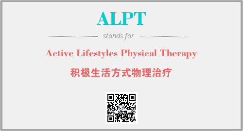 上述内容是“Active Lifestyles Physical Therapy”作为“ALPT”的缩写,解释为“积极生活方式物理治疗”时的信息,以及英文缩略词ALPT所代表的英文单词,其对应的中文拼音、详细解释以及在英文中的流行度和相关分类、应用领域及应用示例等。