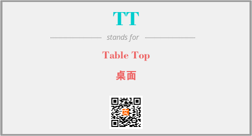 上述内容是“Table Top”作为“TT”的缩写,解释为“桌面”时的信息,以及英文缩略词TT所代表的英文单词,其对应的中文拼音、详细解释以及在英文中的流行度和相关分类、应用领域及应用示例等。