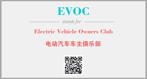 英文缩略词“EVOC”经常作为“Electric Vehicle Owners Club”的英文缩写来使用,中文表示:“电动汽车车主俱乐部”。本文将详细介绍英文缩写词EVOC所代表英文单词,其对应的中文拼音、详细解释以及在英语中的流行度。此外,还有关于缩略词EVOC的分类、应用领域及相关应用示例等。