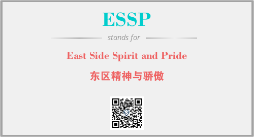 英文缩略词“ESSP”经常作为“East Side Spirit and Pride”的英文缩写来使用,中文表示:“东区精神与骄傲”。本文将详细介绍英文缩写词ESSP所代表英文单词,其对应的中文拼音、详细解释以及在英语中的流行度。此外,还有关于缩略词ESSP的分类、应用领域及相关应用示例等。