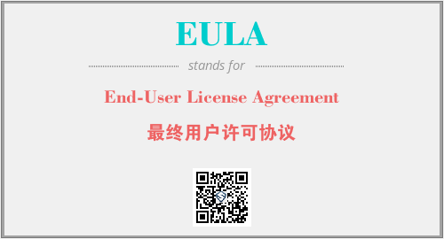 上述内容是“End-User License Agreement”作为“EULA”的缩写,解释为“最终用户许可协议”时的信息,以及英文缩略词EULA所代表的英文单词,其对应的中文拼音、详细解释以及在英文中的流行度和相关分类、应用领域及应用示例等。