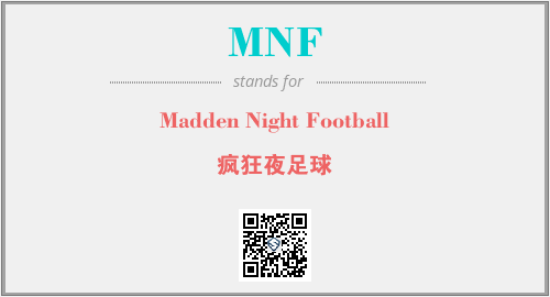 英文缩略词“MNF”经常作为“Madden Night Football”的英文缩写来使用,中文表示:“疯狂夜足球”。本文将详细介绍英文缩写词MNF所代表英文单词,其对应的中文拼音、详细解释以及在英语中的流行度。此外,还有关于缩略词MNF的分类、应用领域及相关应用示例等。