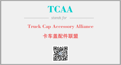 上述内容是“Truck Cap Accessory Alliance”作为“TCAA”的缩写,解释为“卡车盖配件联盟”时的信息,以及英文缩略词TCAA所代表的英文单词,其对应的中文拼音、详细解释以及在英文中的流行度和相关分类、应用领域及应用示例等。