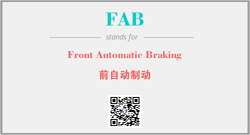 上述内容是“Front Automatic Braking”作为“FAB”的缩写,解释为“前自动制动”时的信息,以及英文缩略词FAB所代表的英文单词,其对应的中文拼音、详细解释以及在英文中的流行度和相关分类、应用领域及应用示例等。