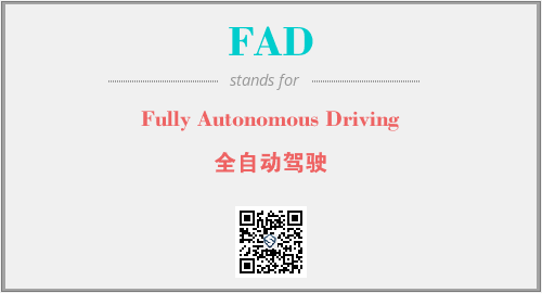 上述内容是“Fully Autonomous Driving”作为“FAD”的缩写,解释为“全自动驾驶”时的信息,以及英文缩略词FAD所代表的英文单词,其对应的中文拼音、详细解释以及在英文中的流行度和相关分类、应用领域及应用示例等。