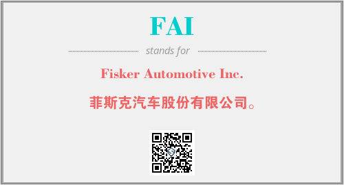上述内容是“Fisker Automotive Inc.”作为“FAI”的缩写,解释为“菲斯克汽车股份有限公司。”时的信息,以及英文缩略词FAI所代表的英文单词,其对应的中文拼音、详细解释以及在英文中的流行度和相关分类、应用领域及应用示例等。