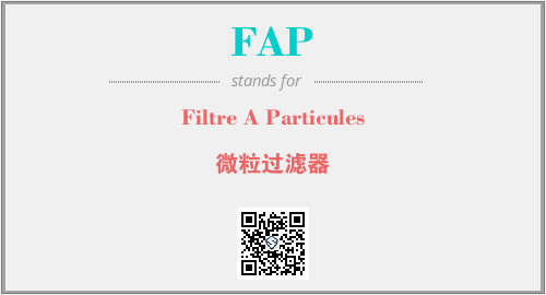 上述内容是“Filtre A Particules”作为“FAP”的缩写,解释为“微粒过滤器”时的信息,以及英文缩略词FAP所代表的英文单词,其对应的中文拼音、详细解释以及在英文中的流行度和相关分类、应用领域及应用示例等。