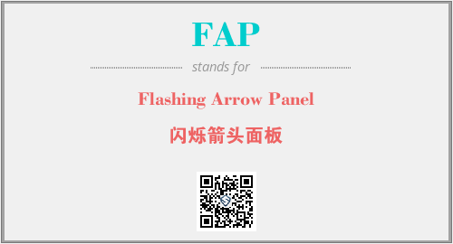 上述内容是“Flashing Arrow Panel”作为“FAP”的缩写,解释为“闪烁箭头面板”时的信息,以及英文缩略词FAP所代表的英文单词,其对应的中文拼音、详细解释以及在英文中的流行度和相关分类、应用领域及应用示例等。
