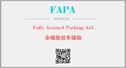 英文缩略词“FAPA”经常作为“Fully Assisted Parking Aid”的英文缩写来使用,中文表示:“全辅助驻车辅助”。本文将详细介绍英文缩写词FAPA所代表英文单词,其对应的中文拼音、详细解释以及在英语中的流行度。此外,还有关于缩略词FAPA的分类、应用领域及相关应用示例等。