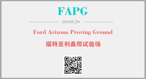 上述内容是“Ford Arizona Proving Ground”作为“FAPG”的缩写,解释为“福特亚利桑那试验场”时的信息,以及英文缩略词FAPG所代表的英文单词,其对应的中文拼音、详细解释以及在英文中的流行度和相关分类、应用领域及应用示例等。